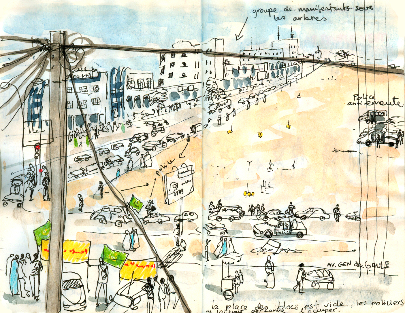 Since the 25th of February 2011 young people have been demonstrating regularly at the "Place des blocks" an enormous empty space close to "Marché Capital" that's supposed to became the heart of a futuristic City Center.